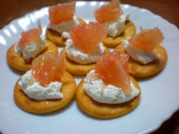 リッツ&プレミアム! モラタメ情報 2007年12月20日 モラタメさんからモラタメ特製パーティセットを頂きました! 内容は、ヤマザキナビスコの「リッツ」と「プレミアム」です。 リッツとプレミアムといえば有名も有名ですよね 今回はその2つにプラスしておまけまで頂いてとっても嬉しかったです! リッツはうちの母親もハマっていて、普通にも良く食べています 今回は上にこんなものを乗せてみました。 本当にお手軽です。 リッツの上にレモン風味の生クリームを添えて、 その上にルビーグレープフルーツをひと乗せ。 これは本当に美味しかったです! 普段からルビーグレープフルーツが好きなせいもあるんだろうけど、リッツ特有の甘さしょっぱさと、レモン生クリームとルビーグレープフルーツの酸味がなんともいえずマッチしてました 一度食べて満足してから、もう一度食べてしまいました。(笑) それから、プチデザート風にこんなものも作ってみました。 これもお手軽です。(笑) 市販のチーズケーキスティックがあったので、それを小さくカット。 リッツを混ぜたヨーグルトをかけて、上にアプリコットジャムを垂らしてみました。そしてプレミアムを添えて、さっとミニデザート風の出来上がりです。 このジャムがブルーベリーだったらチーズケーキにも合ってもっと良かったなあと思うのですが、残念ながらアプリコットしかなかったです プレミアムは塩気があるので、ヨーグルトやジャムをすくって一緒に食べました。 うちの姉は普通にバターで食べるのが一番好きだと言っています。(笑) 母はリッツ好きですが、姉はプレミア好きなんですね。こんなふうに、我が家にはうまい具合にファンがいます [0回]PR